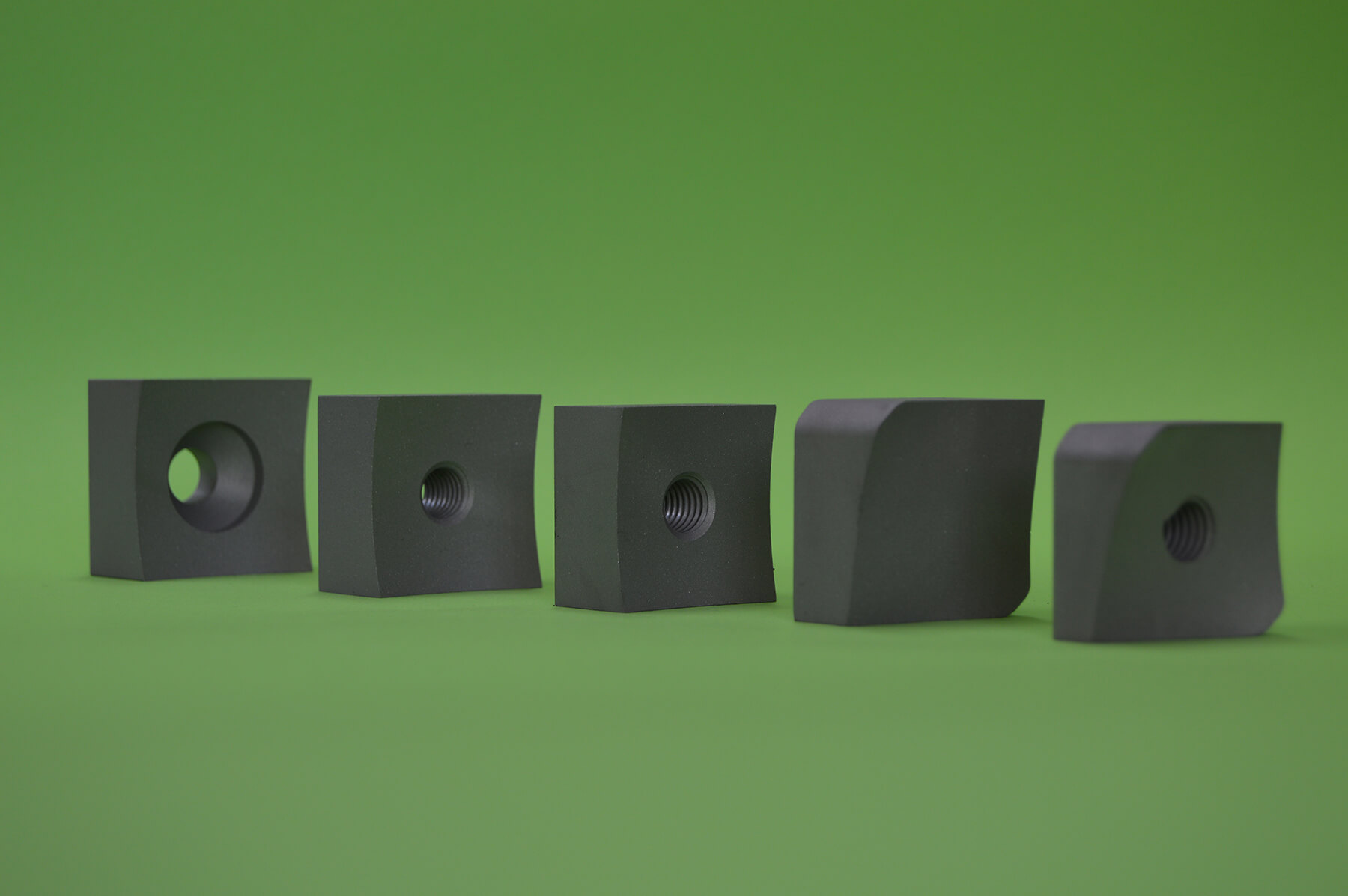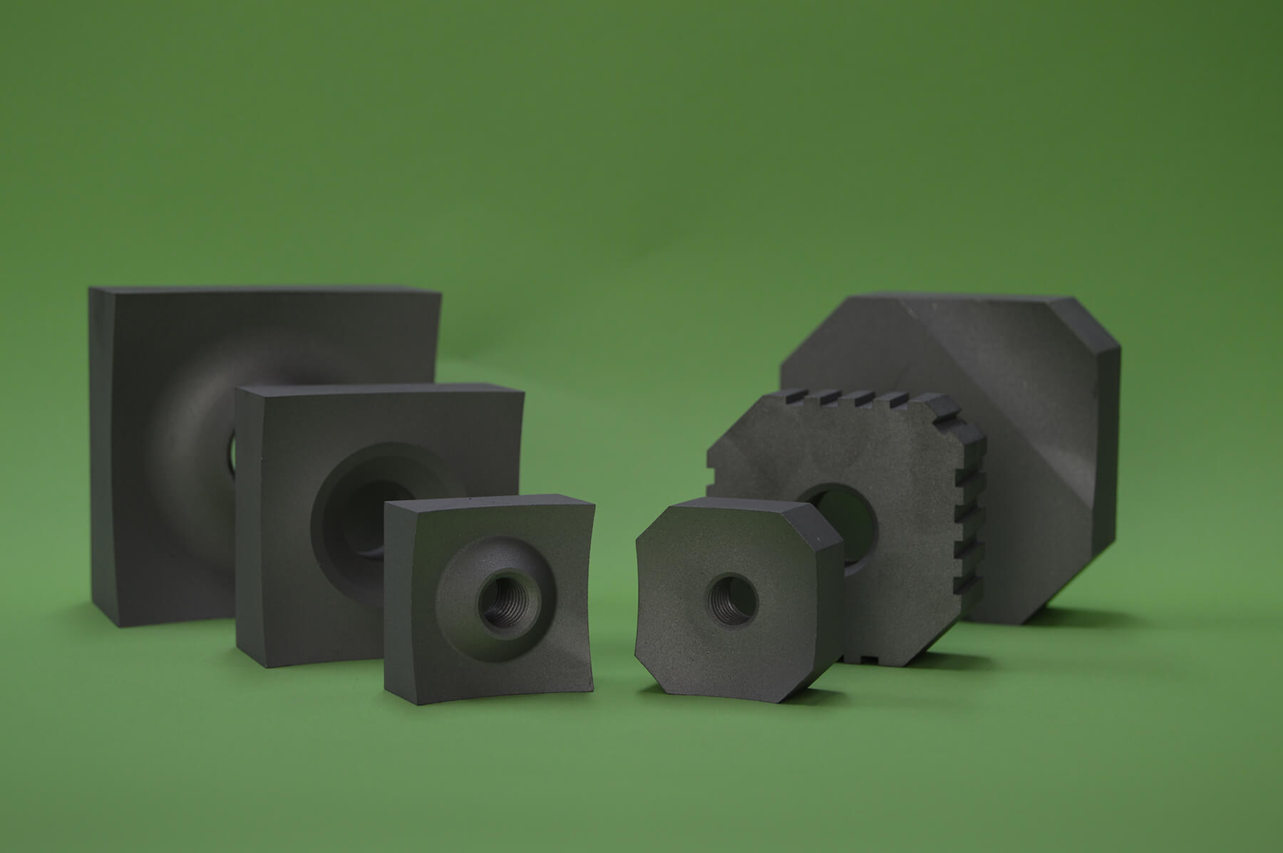 Glede na vrsto materiala, ki ga bomo reciklirali, določimo tudi kvaliteto vložnega materiala. Najpogosteje uporabljamo kvaliteto W.Nr.1.2379, ki pokriva najširši spekter recikliranih materialov. Po želji kupca in podanih informacijah o recikliranih materialih, svetujemo izbiro vložnega materiala in trdoto izdelkov. V zadnjem času se precej pojavljajo posebne modificirane in oplemenitene vrste materialov, katere izboljšajo kvaliteto drobljenja, predvsem pa podaljšajo življenjsko dobo orodja. V našem podjetju zagotavljamo optimalno kvaliteto orodja in maksimalno vzdržljivost, kar poveča ekonomičnost strojev. Ponujamo tudi specialne kocke iz TK materialov in iz materialov prašnate metalurgije.